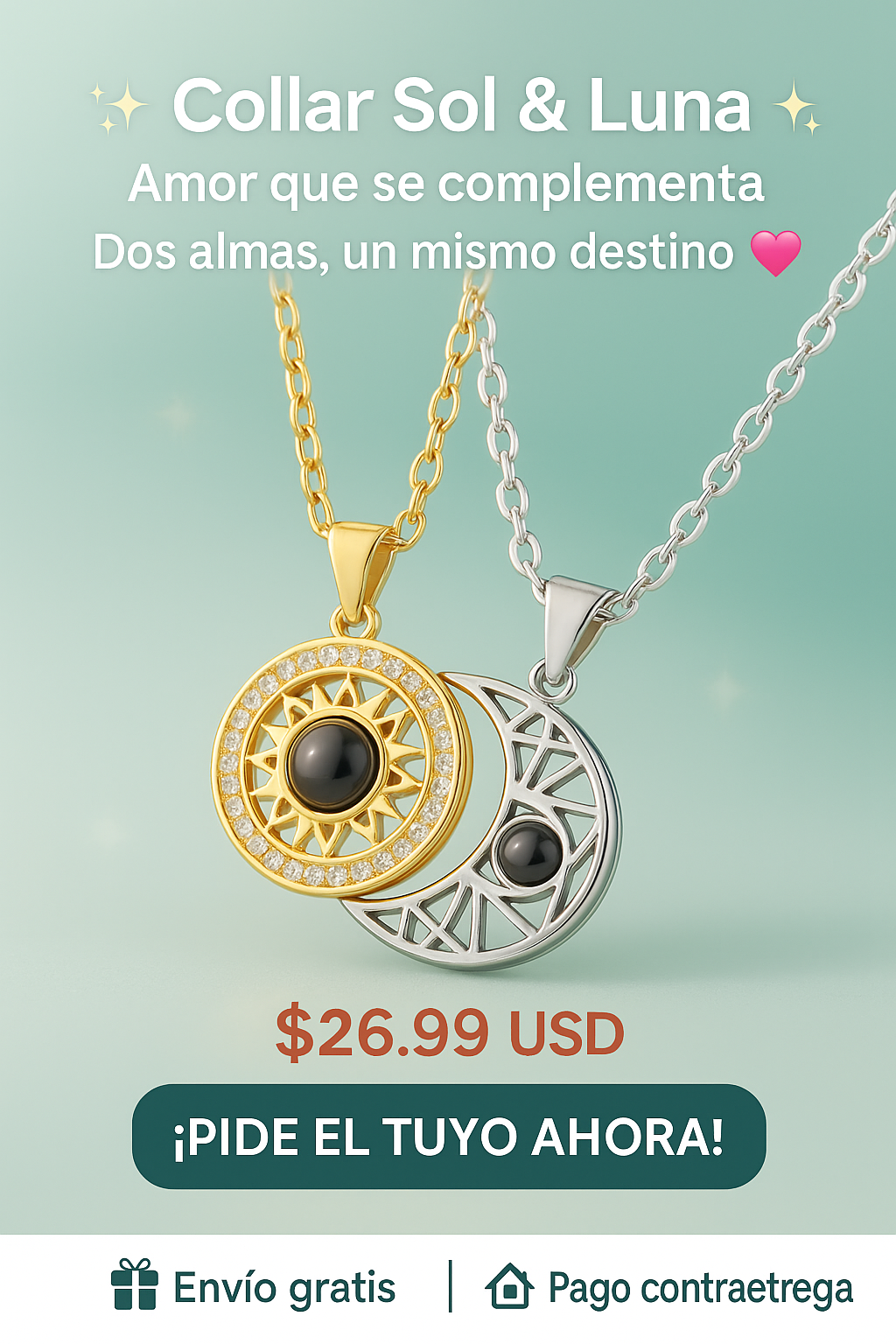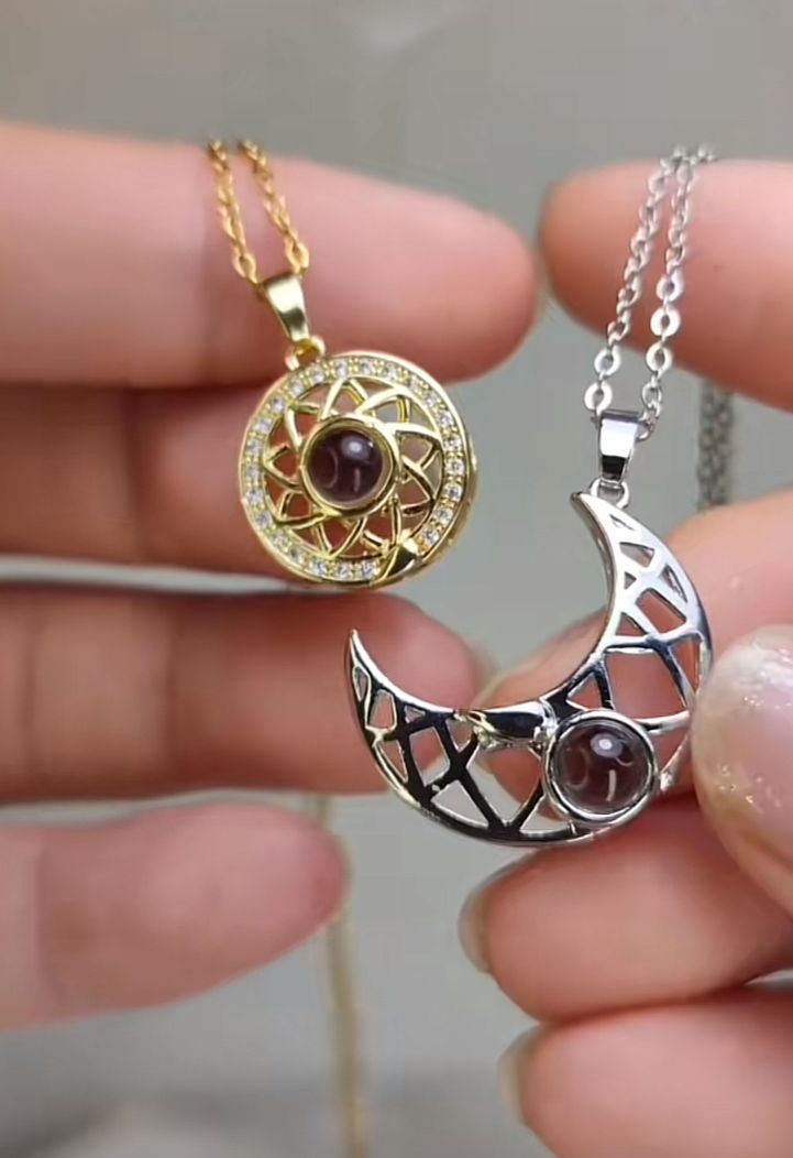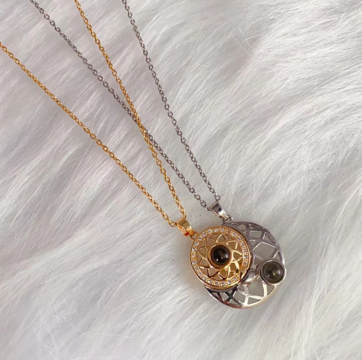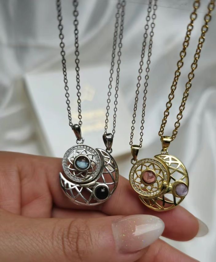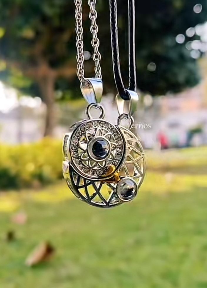 Inspirado en el Sol y la Luna, representa dualidad y equilibrio. Cada dije encaja con el otro, simbolizando unión y armonía.