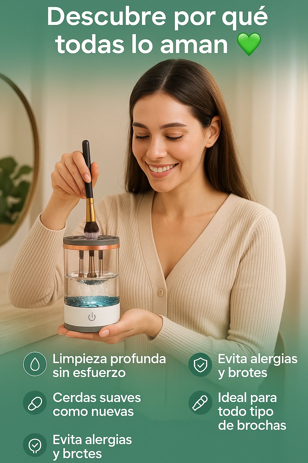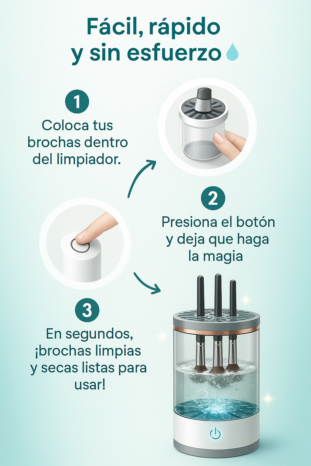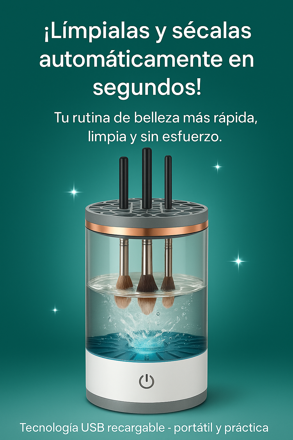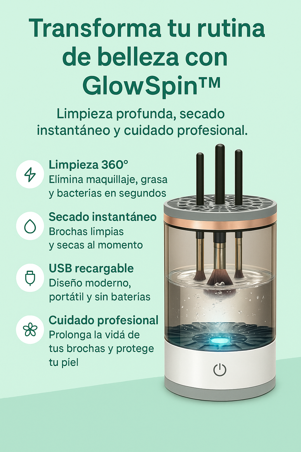 El GlowSpin™ Limpiador de Brochas Eléctrico USB no solo limpia, cuida tu piel y prolonga la vida útil de tus herramientas favoritas.