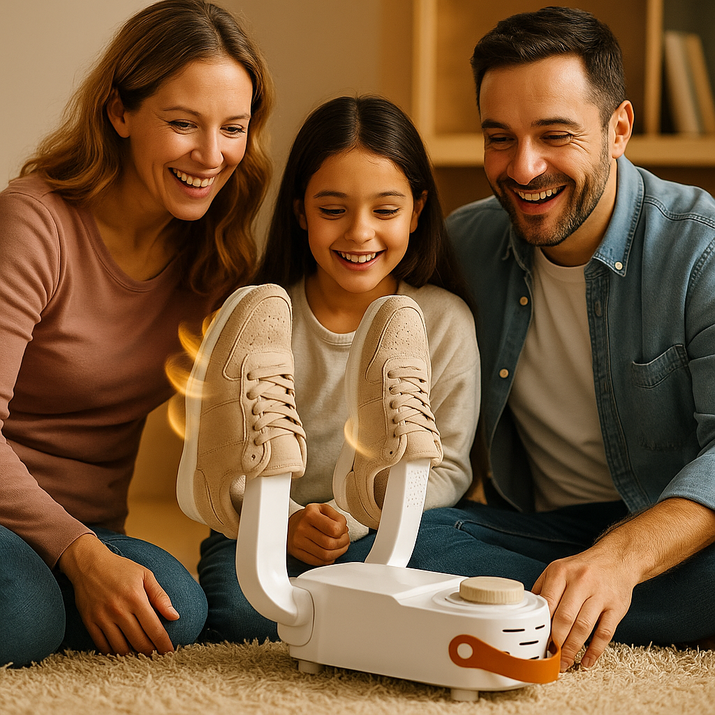 Tengo dos niños y todos los días llegaban con los zapatos mojados del colegio. Este secador ha sido la mejor compra, en 20 minutos quedan secos y sin olor. Ya no tengo que ponerlos al sol ni usar secadora. ¡Funciona de verdad!"