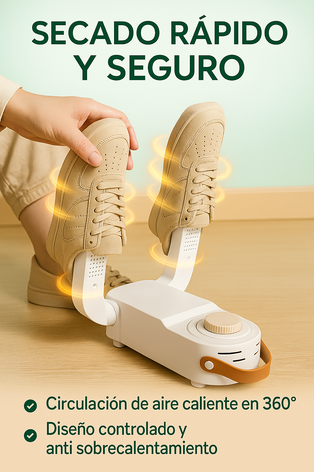 ⏱️Secado 360° – Aire caliente circula por todo el interior del zapato.